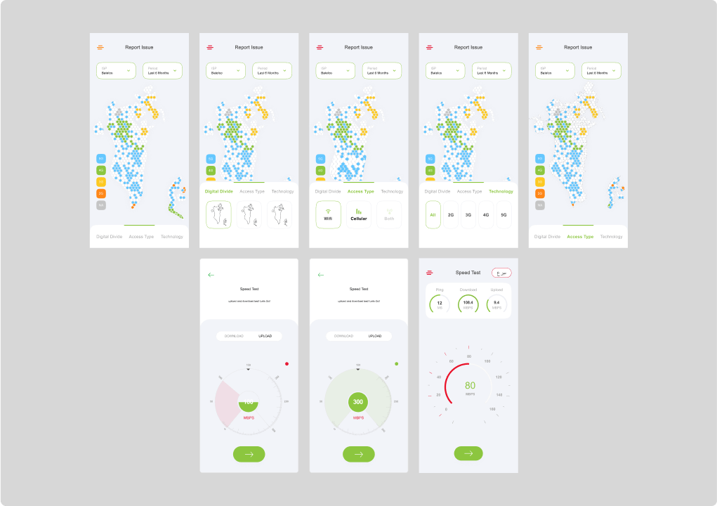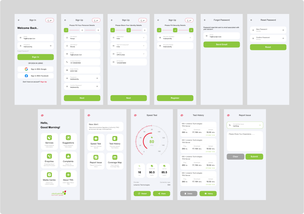 I had the opportunity to work on the User Interface (UI) and User Experience (UX) design of an Internet speed testing application for TRA Bahrain. The primary goal was to create a seamless and intuitive experience for users to test their internet speeds accurately. The UI design focused on a clean and modern aesthetic, with a user-friendly interface that guided users through the testing process effortlessly. Clear visual indicators and informative feedback provided real-time updates on the speed test progress. The UX design emphasized simplicity, ensuring that users could quickly initiate tests, view results, and understand the implications of their internet speeds. Through iterative design and user testing, we created an application that not only met the technical requirements but also prioritized the needs and expectations of TRA Bahrain’s users, providing them with a reliable tool to assess their internet performance.