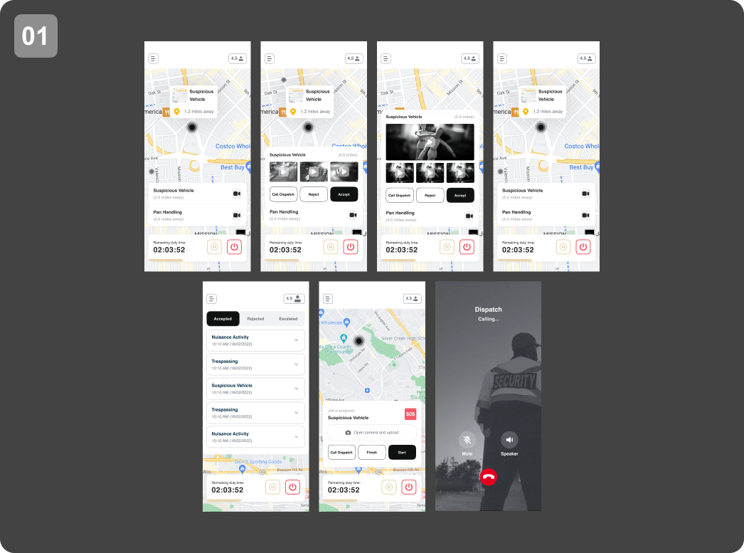 I recently had the opportunity to work on the UI/UX design of the Dispatch mobile application(ON VIEW) for security patrols. Our primary focus was to create a clean and minimalist UI, emphasizing usability and functionality. Taking into consideration our client’s preferences, we recommended minimizing the use of colors to maintain a professional and sleek appearance.